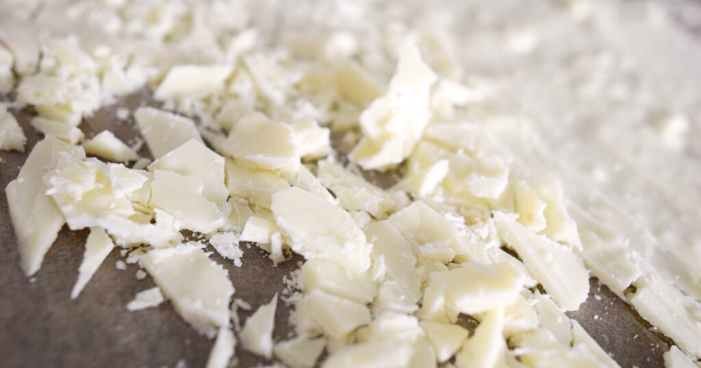 - Meanwhile, heat the remaining white chocolate chips until mostly melted. Whisk until smooth. Thinly spread over parchment paper and allow to dry and set.